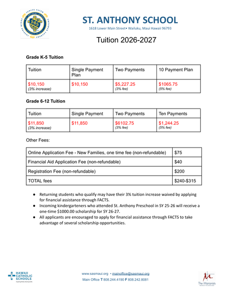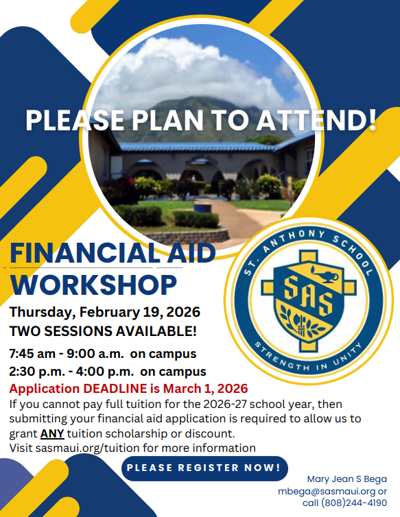 St. Anthony School is a Catholic, Marianist sponsored Preschool - 12th grade school where all are welcomed in the spirit of aloha. We are committed to serving mind, body, and spirit in a CHRIST-CENTERED, challenging academic environment that inspires each student to be their individual best for the world.